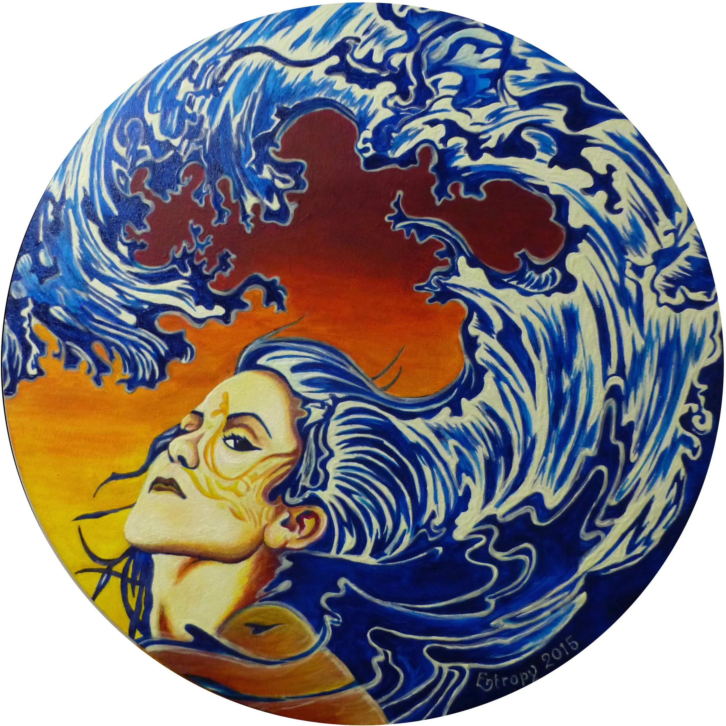 My first painting “Rebirth”, which is also my artist logo, symbolizes my personal transformation. The woman emerging from the ocean wave represents my liberation, when I was discovering free expression and moving towards my true self. While unleashing the power of the ocean she reaches her full potential.