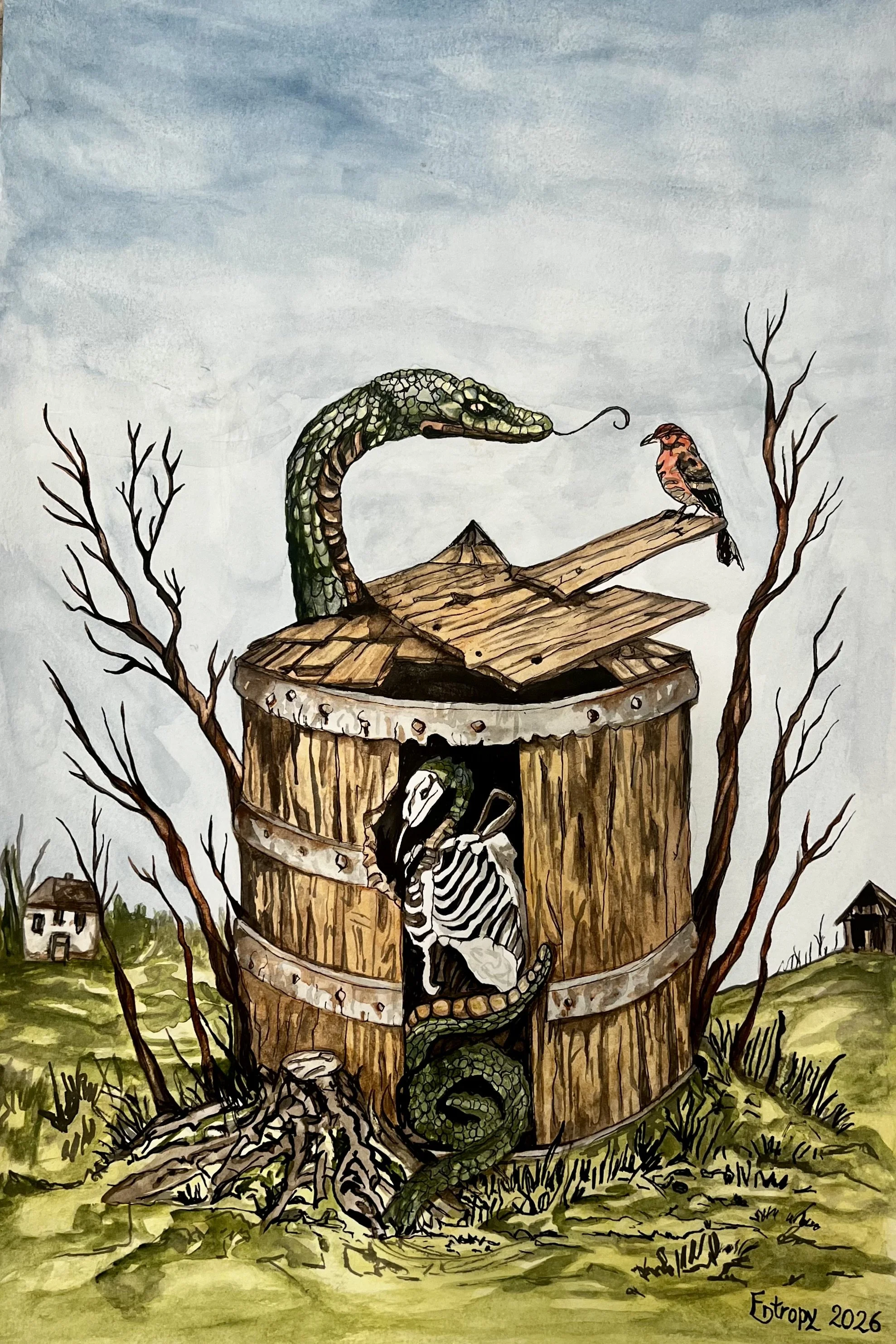 Drawing from fairytales, mythology, and theatrical staging, my work examines migration and identity as lived and inherited conditions. Figures appear suspended between worlds. They are caught in systems of belonging that echo both childhood narratives and contemporary realities. Through dark surreal imagery, I question who is allowed to arrive, who remains in transit, and how these boundaries are constructed.